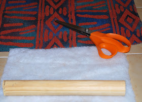This is an easy to make and a cute little gift for someone. All you need is some quilt batting, fabric of your choice and a 1 inch dowel 10 inches long or any length you desire. Cut the batting to fit the length of your dowel, I used a piece that is 10" by 11", enough to roll the dowel 3 or 4 times. Cut the fabric piece (use pinking shears if needed) to fit the length of your dowel with an extra 3" on each end for gathering, I used a piece that is 7" by 16", enough to roll the dowel about 3 times. Turn the exposed side under for finished edge and pin in place (see photo), slip stitch from end to end. Gather each end of fabric, I gathered with thread first to hold it and then tie off with ribbon or roping or whatever you desire that coordinates with fabric. All done! So slip on your bracelets and watches to keep them neat and all together.