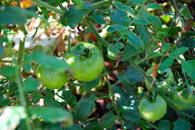 It is time to let them go......my "little green tomatoes". After picking a crop of green tomatoes to store to ripen, I hope, and picking some to decorate with, it was time to pull them up and put in the compost pile.  I hated to do this because the plants were so green and still full of life, but I knew the freezing temps in a couple of nights would destroy them. I let them grow and produce as long as I could, they still had little blooms on them, boy they sure did like my Lasagna Garden. I am preparing my soil for my Lasagna Garden next year, lots of good stuff to pile to decompose during the Winter months. Rich, Rich, Rich soil is what I want next Spring, want to grow some good veggies!