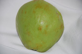 Do you know what this is, have you ever eaten it? It is Chayote (Chah-YOH-teh).....yes it is edible. I have grown several different kinds of squash but never heard of Chayote (Spanish) until the other day. It is native to Mesoamerica where it is a very important ingredient to the diet. A friend gave some to my mom and she passed one onto me, cooked it like I cook yellow squash, it was very good and tasty. I told my husband that it looks like an "old grandpa smiling with no teeth", ha, ha, I don't think he enjoyed the humor too much, since he is a grandpa, but a young grandpa! Anyway Chayote belongs to the plant family of melons, cucumbers, squash and gourds, it has to have lots of room to grow. It can be eaten raw, not for me, and cooked, when cooked like summer squash, it is generally lightly cooked to retain a crisp flavor. Chayote can also be eaten raw, I think I said this already, in salads and salsas, and it is often marinated with lemon or lime juice. Whether you cook it or eat it raw, it is a good source of amino acids and vitamin C.